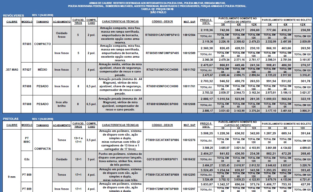 O Sinpol Campinas estará disponibilizando a partir da próxima segunda feira venda de todos os modelos de armamento da fabricante Taurus.