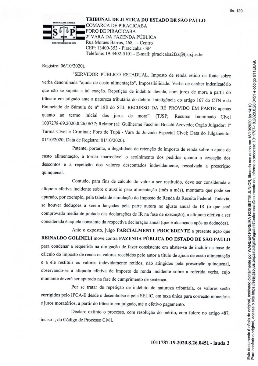 O Sinpol Campinas está ajuizando ação de indébito tributário para policiais civis que tiveram desconto de imposto de renda nos benefícios de ajuda de custo de alimentação e auxílio transporte. O advogado Dr. Rodrigo Zanini obteve êxito nas ações em três meses através do juizado especial.