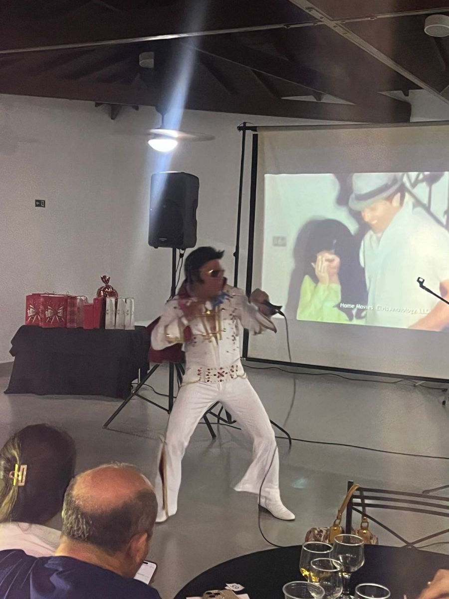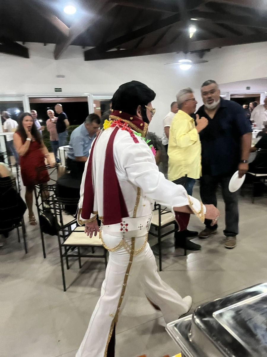 NA SEQUENCIA SE APRESENTOU O COVER DO ELVIS PRESLEY (ESTEVES) QUE CAUSOU GRANDE ANIMAÇÃO ENTRE OS NOSSOS CONVIDADOS QUE DE FORMA SENSACIONAL FEZ COM QUE OS PRESENTES INTERAGISSEM COM O SHOW, CANTANDO E DANÇANDO JUNTO COM ELE DURANTE A APRESENTAÇÃO.