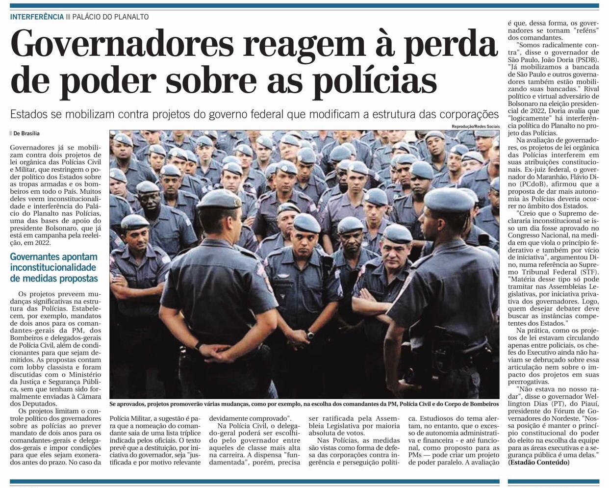 GOVERNADORES REAGEM À PERDA DE PODER SOBRE AS POLÍCIAS - MATÉRIA PUBLICADA NO JORNAL CORREIO POPULAR NO DIA 12/01/2021