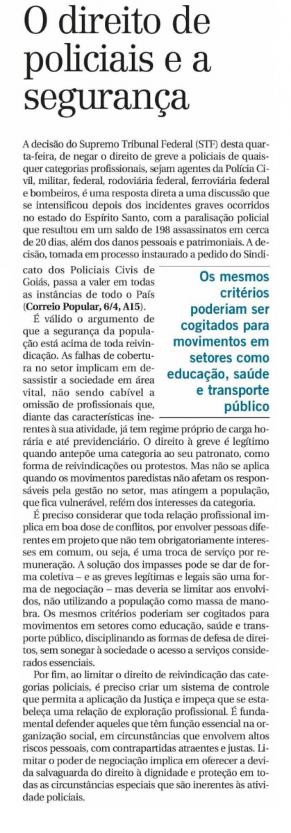 MATÉRIA PUBLICADA NO JORNAL CORREIO POPULAR 07/04/2017