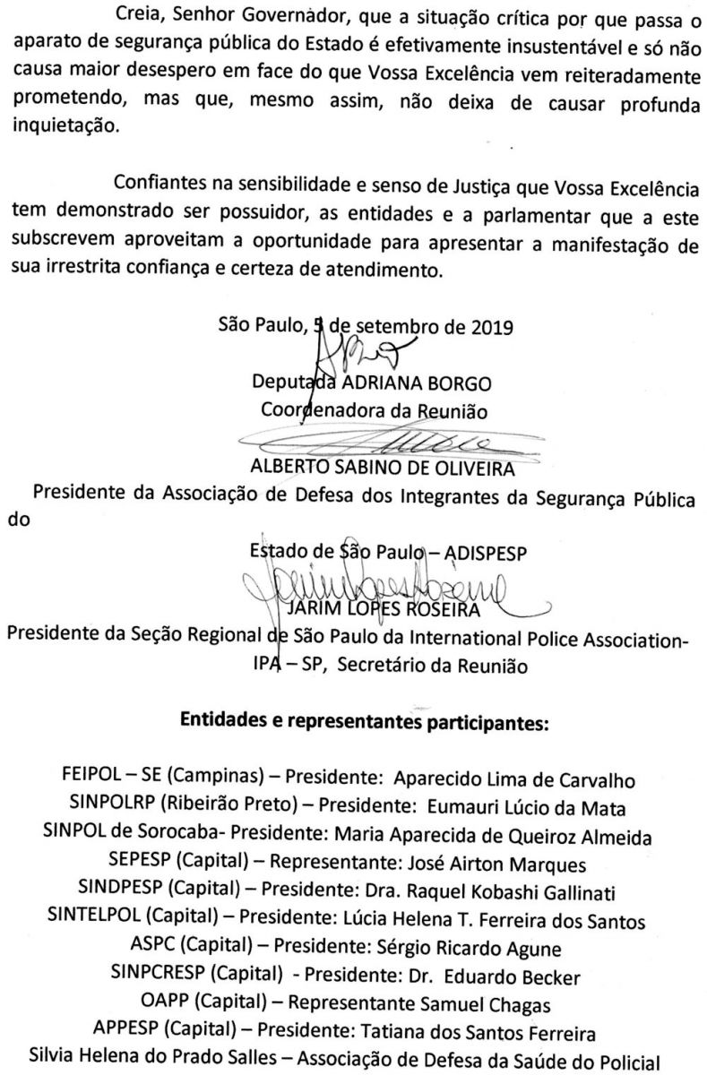 AUDIÊNCIA NO PALÁCIO DO GOVERNO SOBRE A LEI ORGÂNICA DA POLICIA CIVIL DE SÃO PAULO.