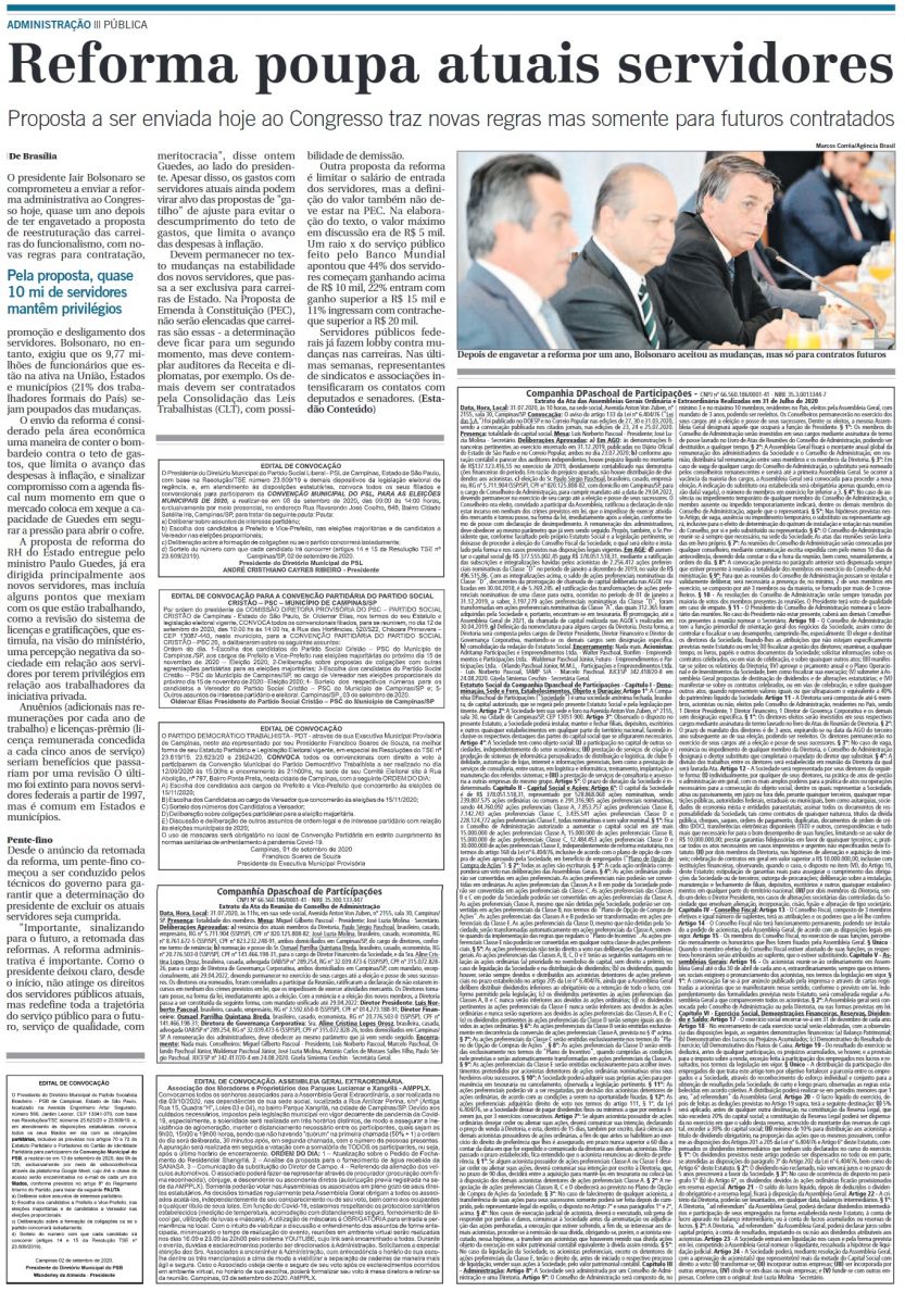 REFORMA POUPA ATUAIS SERVIDORES - MATÉRIA PUBLICADA NO JORNAL CORREIO POPULAR DIA 03/09/2020